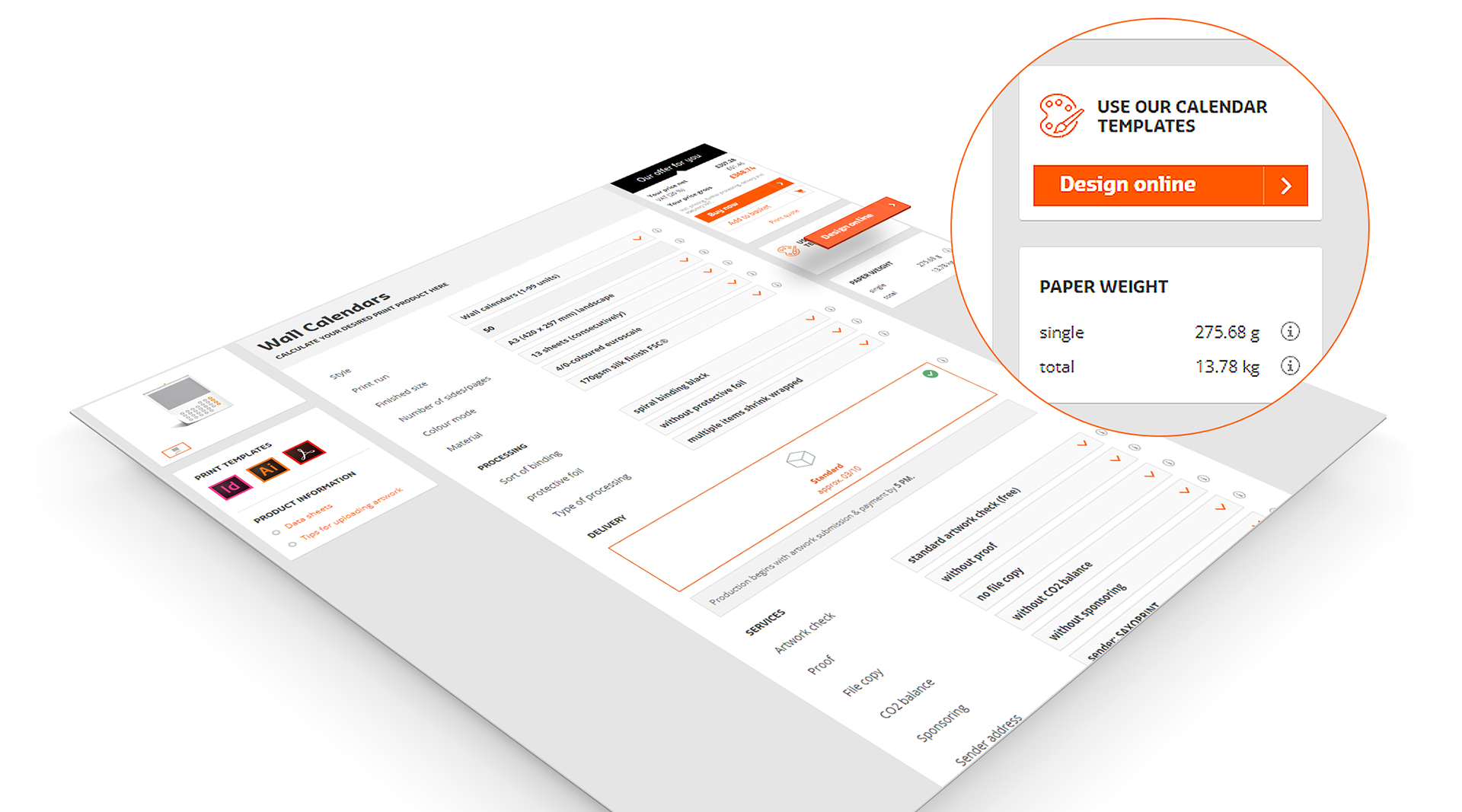 Nel configuratore puoi selezionare innanzitutto il numero di copie, il formato e l'orientamento desiderati, nonché le opzioni del servizio. Non è possibile modificare questi dettagli in seguito senza dover abbandonare il designer.