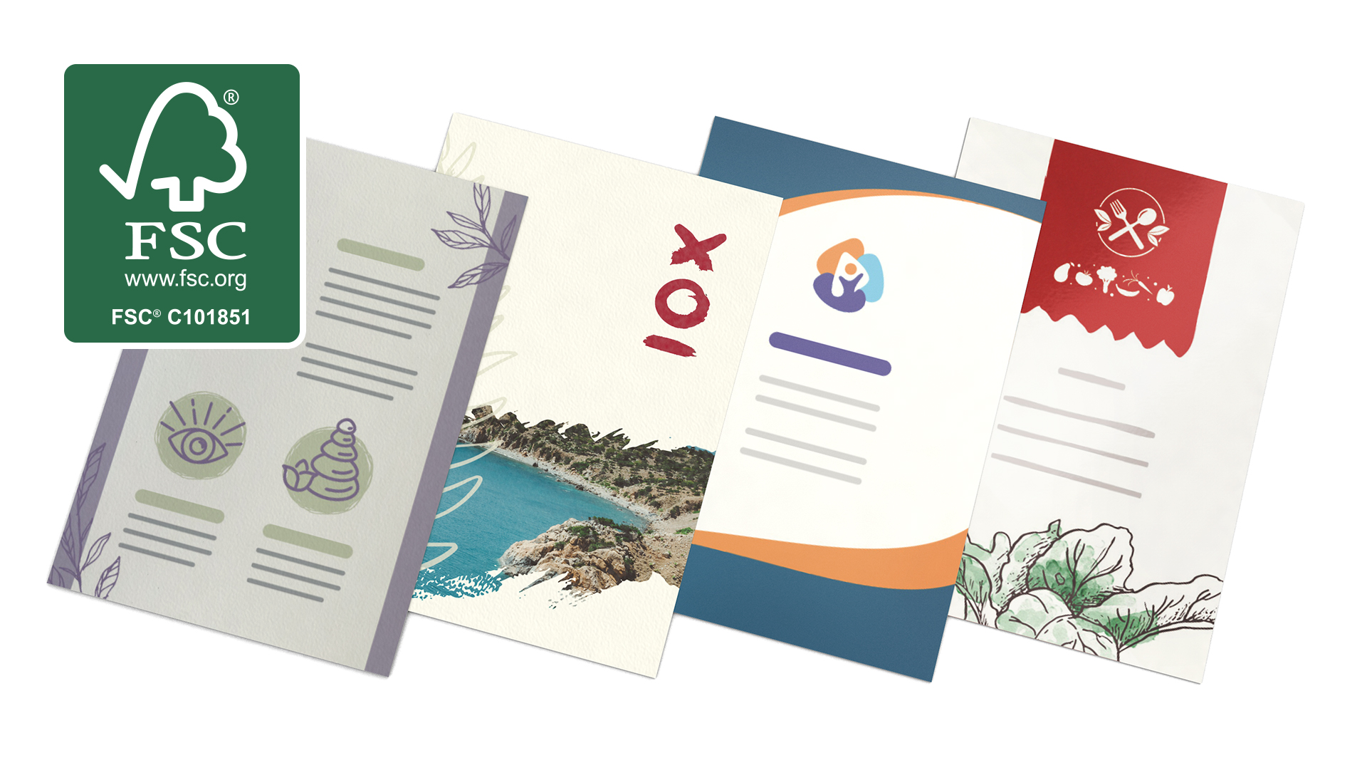 Quando scegli una carta FSC®, hai anche la possibilità di mettere l'etichetta FSC® sul tuo prodotto. Basta selezionare l'opzione quando si configura il prodotto. Stamperemo quindi l'etichetta per te.