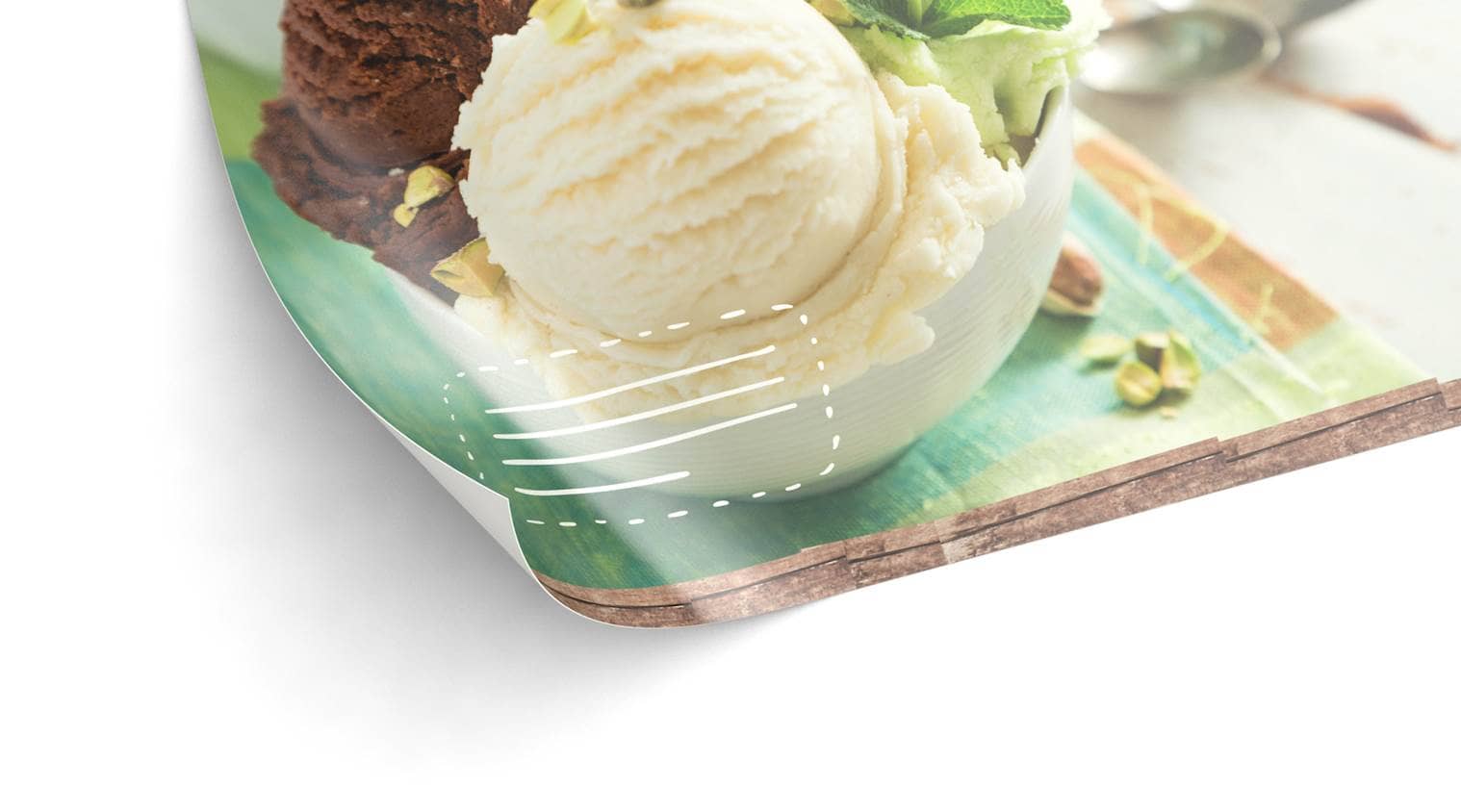 Decidi se ordinare le tue carte dei gelati con o senza pellicola di copertura opaca. Qualunque sia la tua scelta, il prodotto finale sarà in grado di resistere anche alle macchie di gelato più difficili.